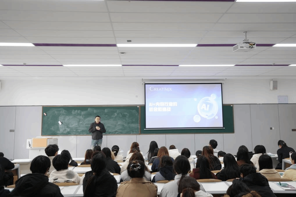 周玮董事长讲到,AI技术正以“摩尔定律式”的速度演进,从Sora到Veo3.1的快速迭代,正重塑内容生产流程与创作边界;结合其公司在AI视频生成、分镜一致性与角色风格控制方面的探索,强调“AI不是替代者,而是协同者”,未来竞争的核心将是“审美+数据+用户理解”的复合能力;在最后,他深入浅出地讲解了人工智能时代AIGC时代大学生可以如何把握机遇、迎接挑战,为学生提供切实可行的行动案例。